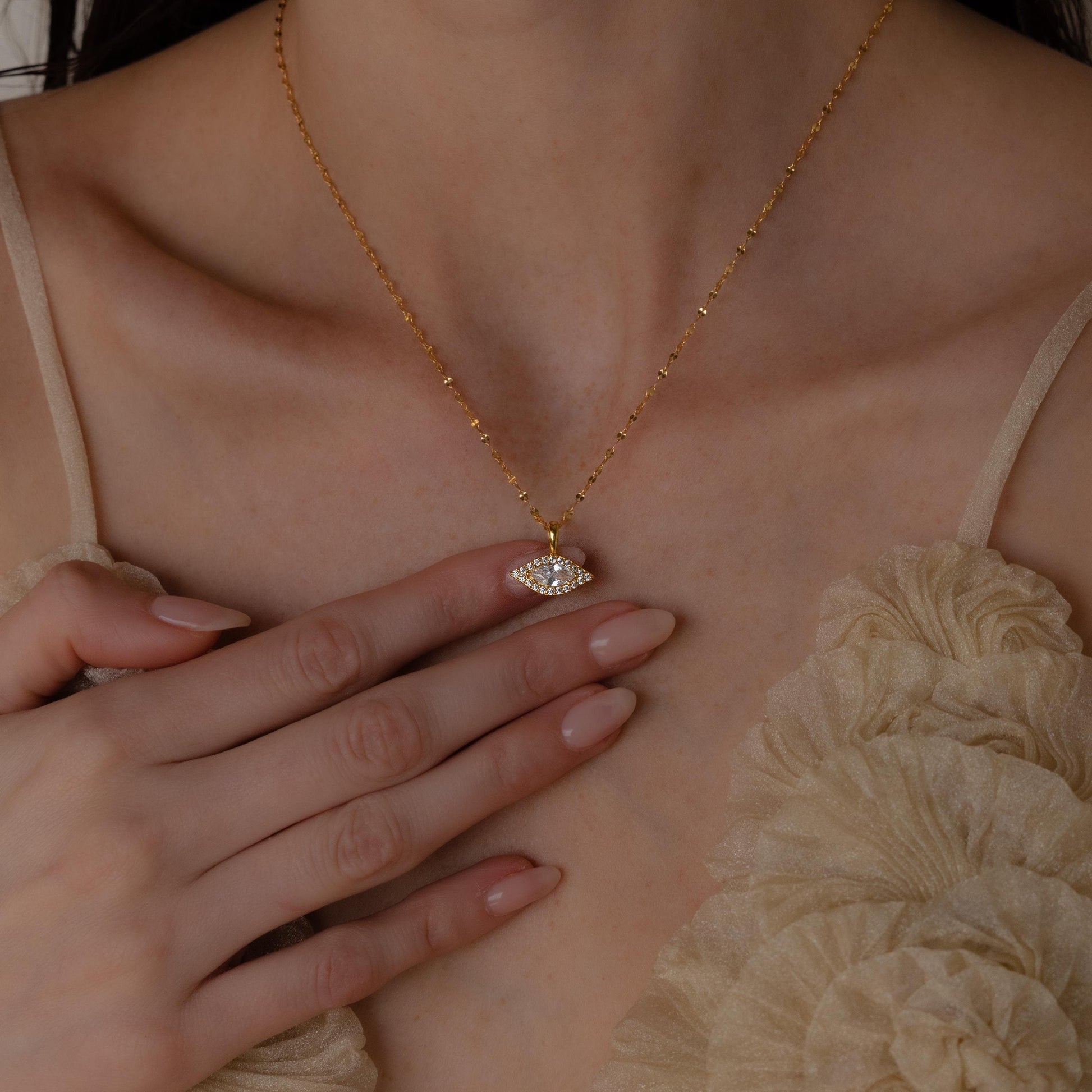 Elevate your jewelry with our Pave Eye Charm, featuring shimmering CZ diamonds in a mystical eye design. Whether added to a necklace or bracelet, this tiny treasure brings a touch of charm and intrigue to your look.
