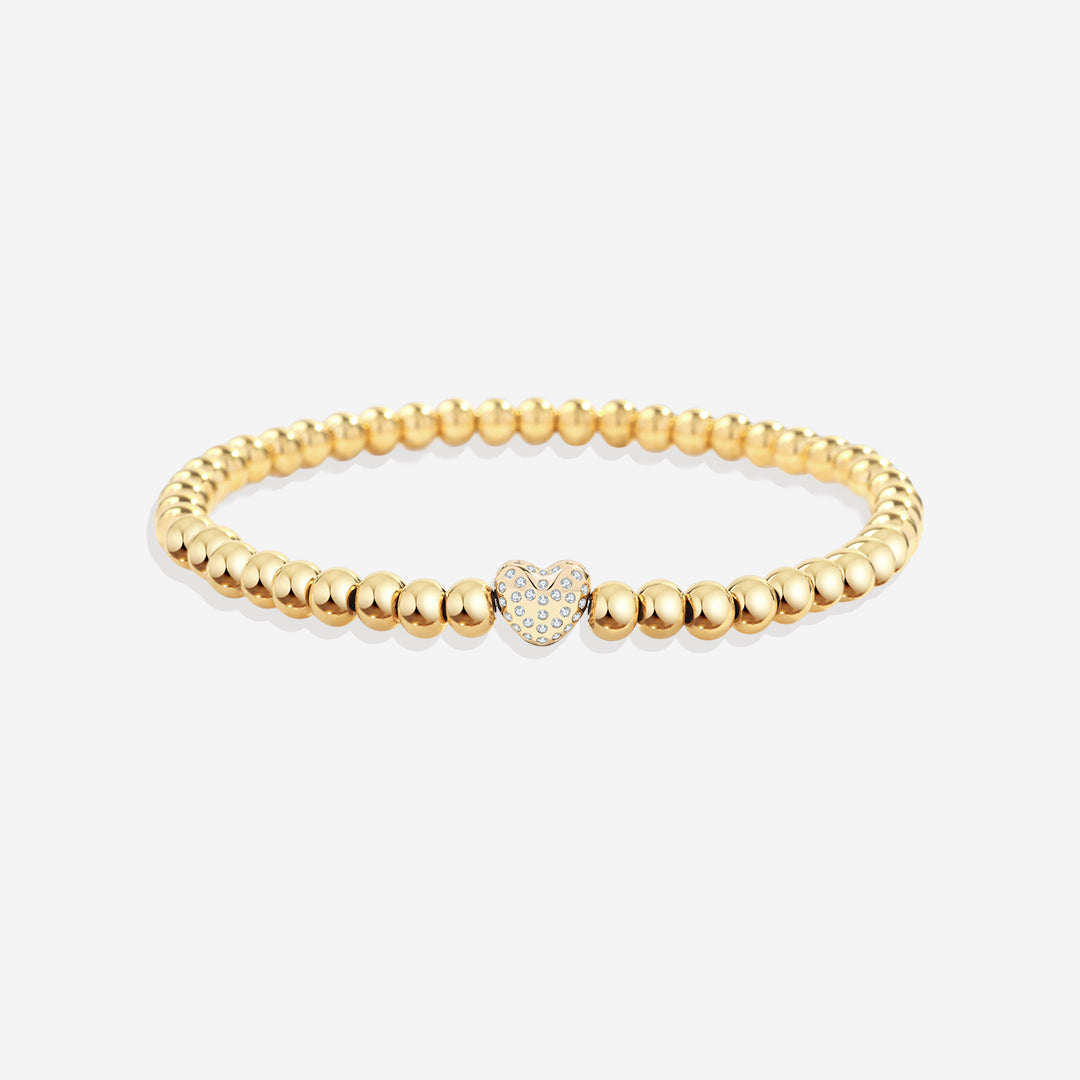 Mint & Lily's Pave Heart Beaded Bracelet beautifully combines elegance with a touch of whimsy. This charming bracelet features a series of delicate beads that are complemented by a sparkling pave heart charm, adding a lovely focal point to the design.
