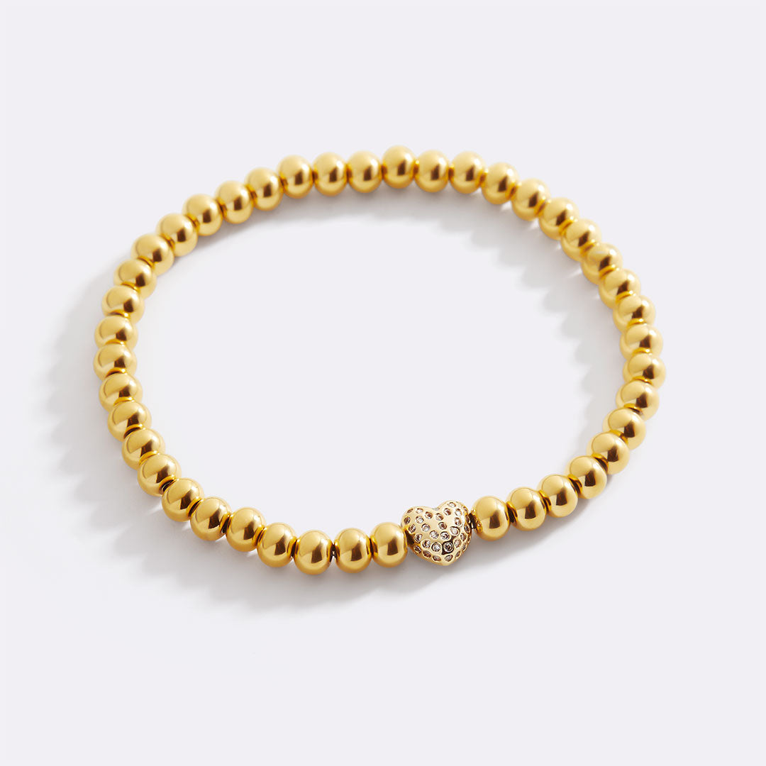 Materials: 18K Gold Plated Beads on a Jewelry-Grade Elastic Band (Read More)