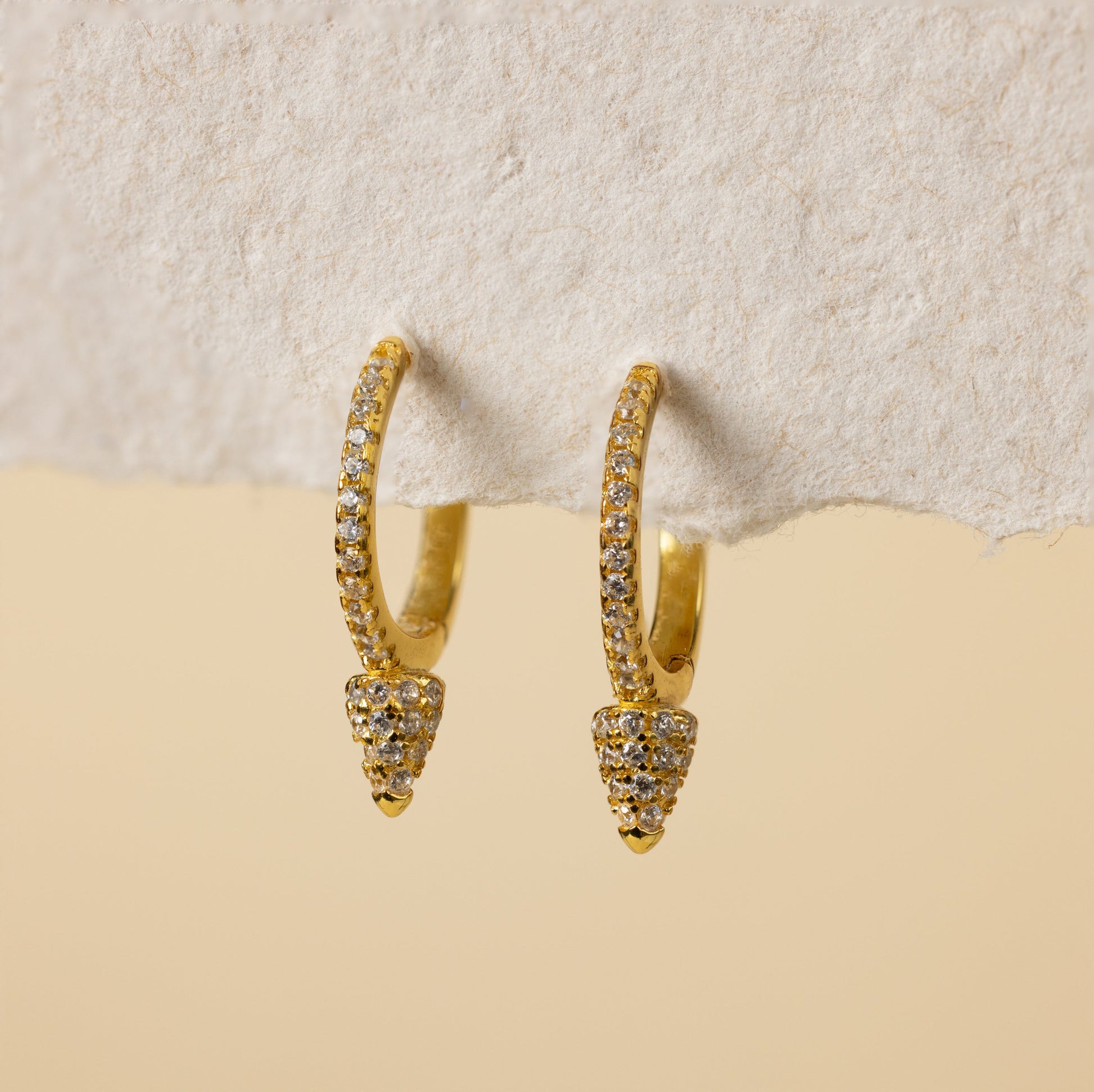 Elevate your style with our Pavé Spike Huggies, featuring sparkling pave-set stones on an edgy cone design. Perfect for making a striking impression, they effortlessly combine elegance and attitude, ensuring you stand out in any crowd ✨