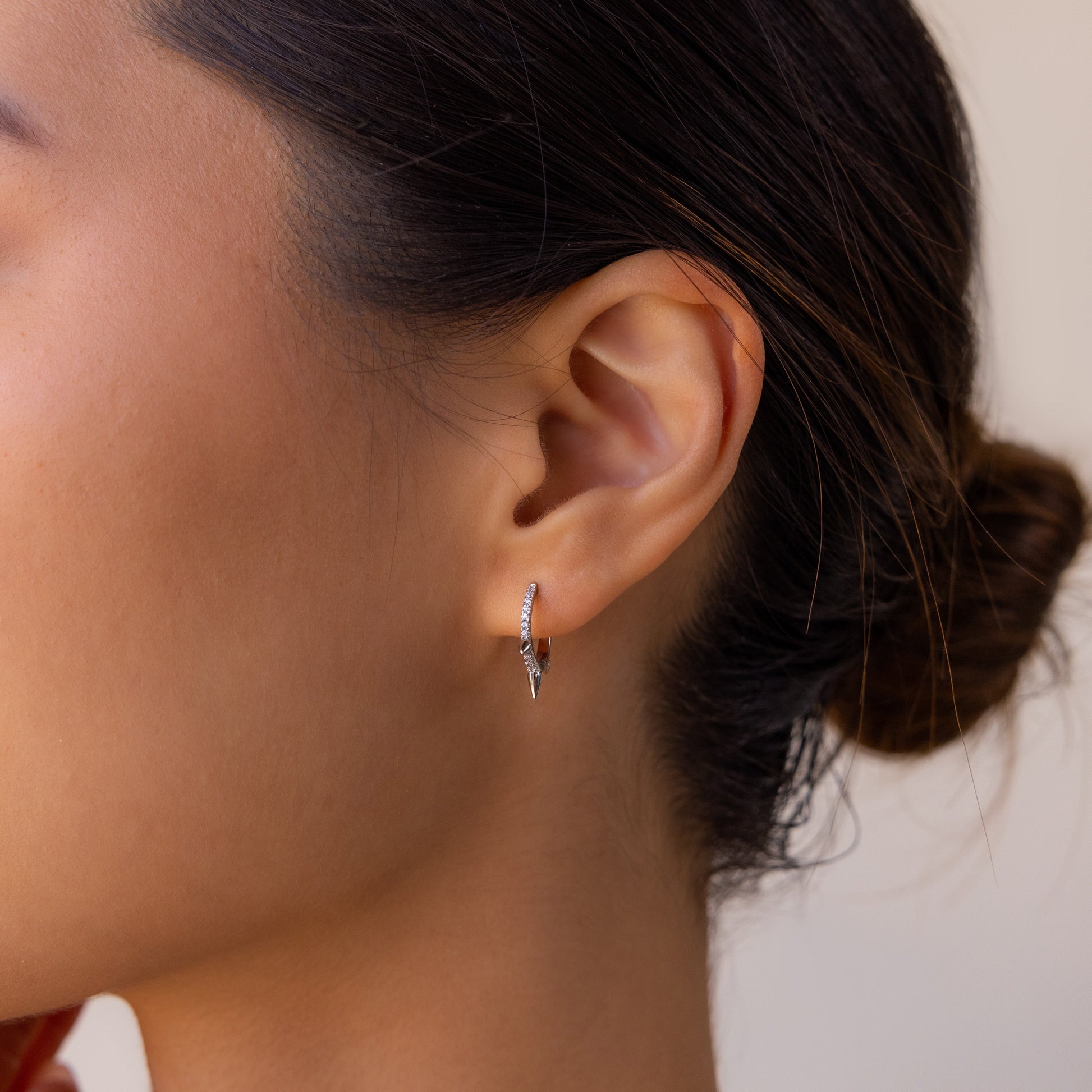 Spice up your jewelry collection with our trend setting Pave Triple Spike Huggies. A minimalist design with a hint of grunge, these Diamond hoop earrings add a little edge to your look while still remaining delicate. It’s the best of both worlds!