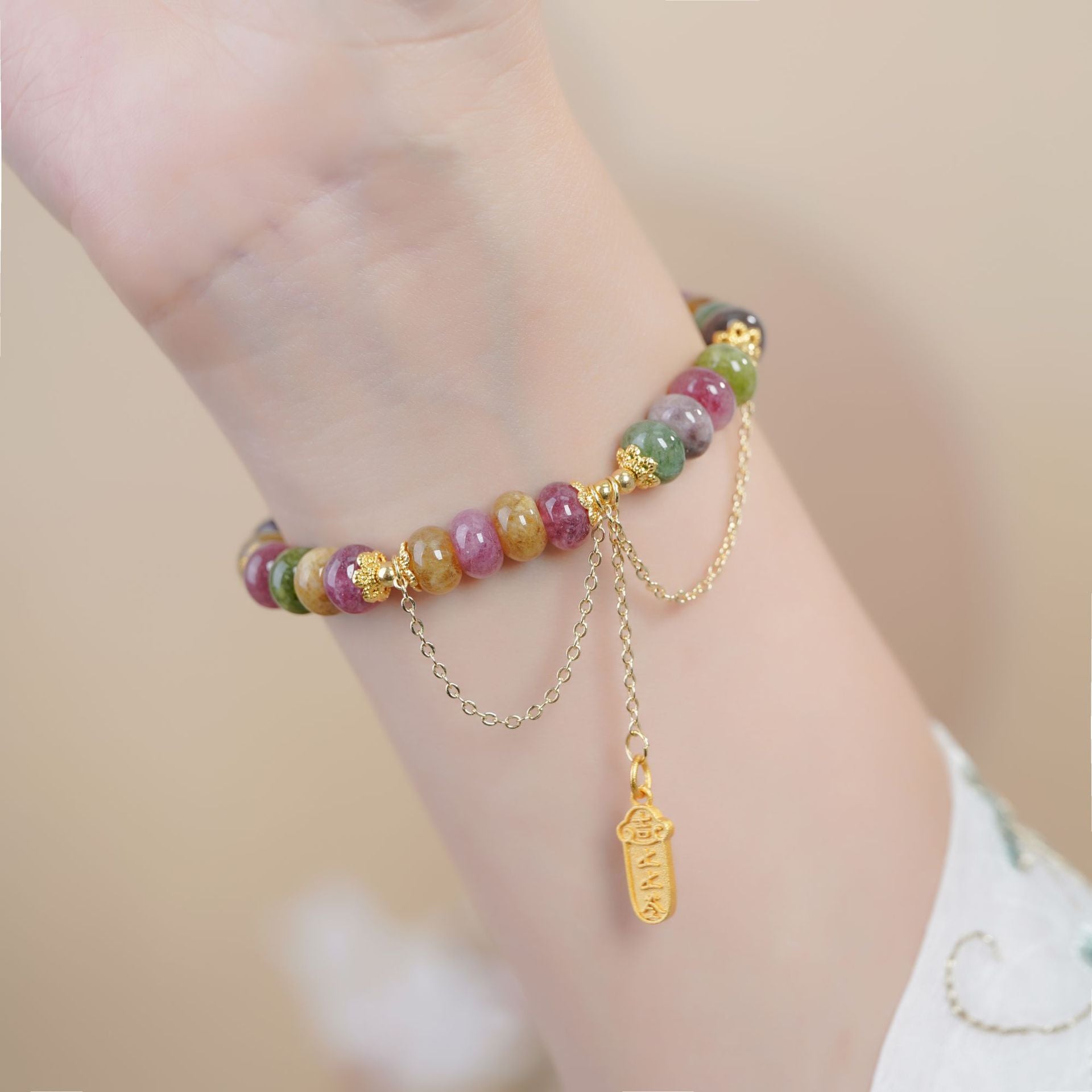 1 x Pink Quartz and Tourmaline Charm Braceletv