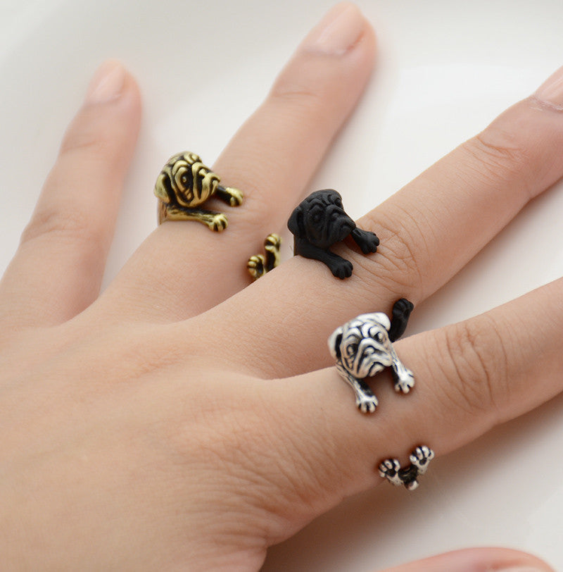 • Classic, Intricate Detailing – Each small wrapped ring features the “Pug”, a pug that is peering over your finger to remind you how much he loves you!