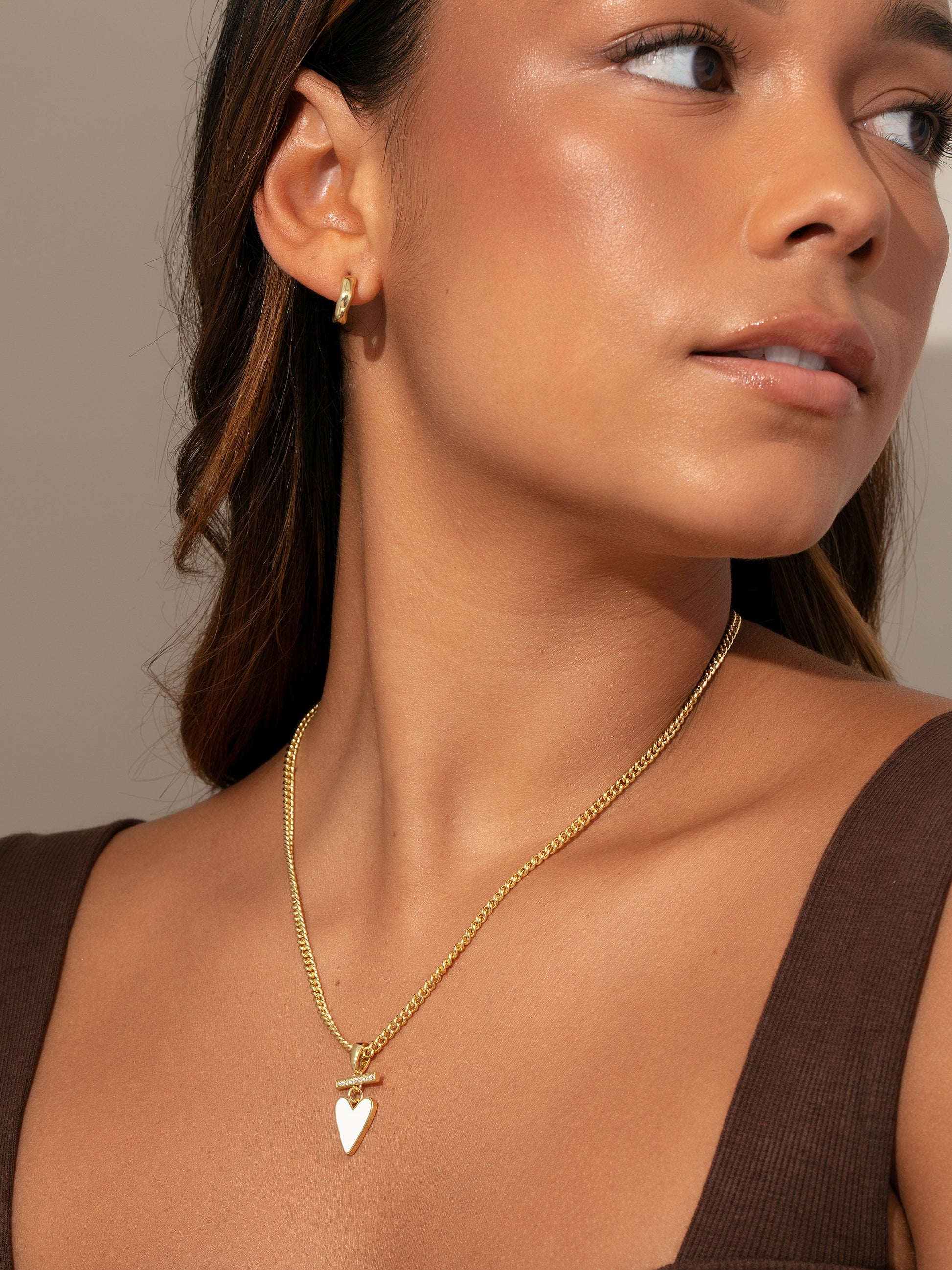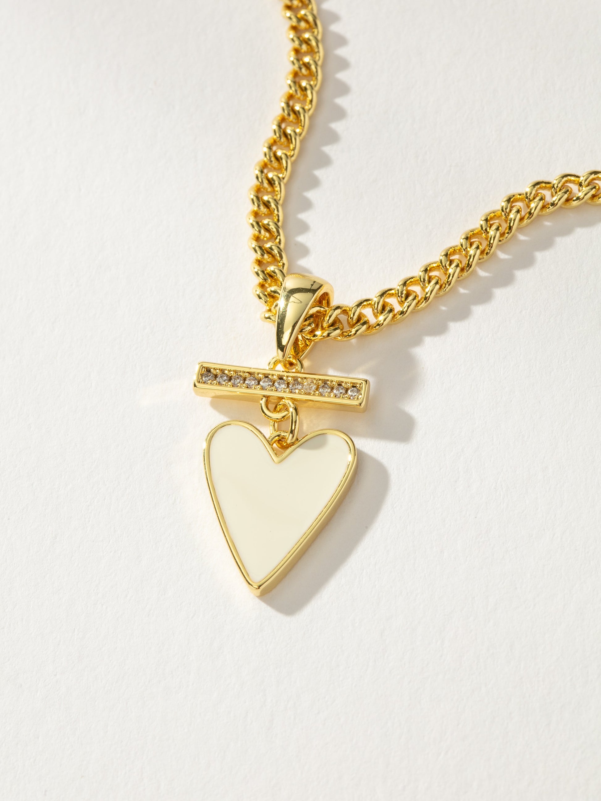 The white enamel heart style everyone already loves is now part of a new necklace! Our Pure Heart Necklace not only features the white heart pendant, but also a gold bar — all on an everyday chain necklace.