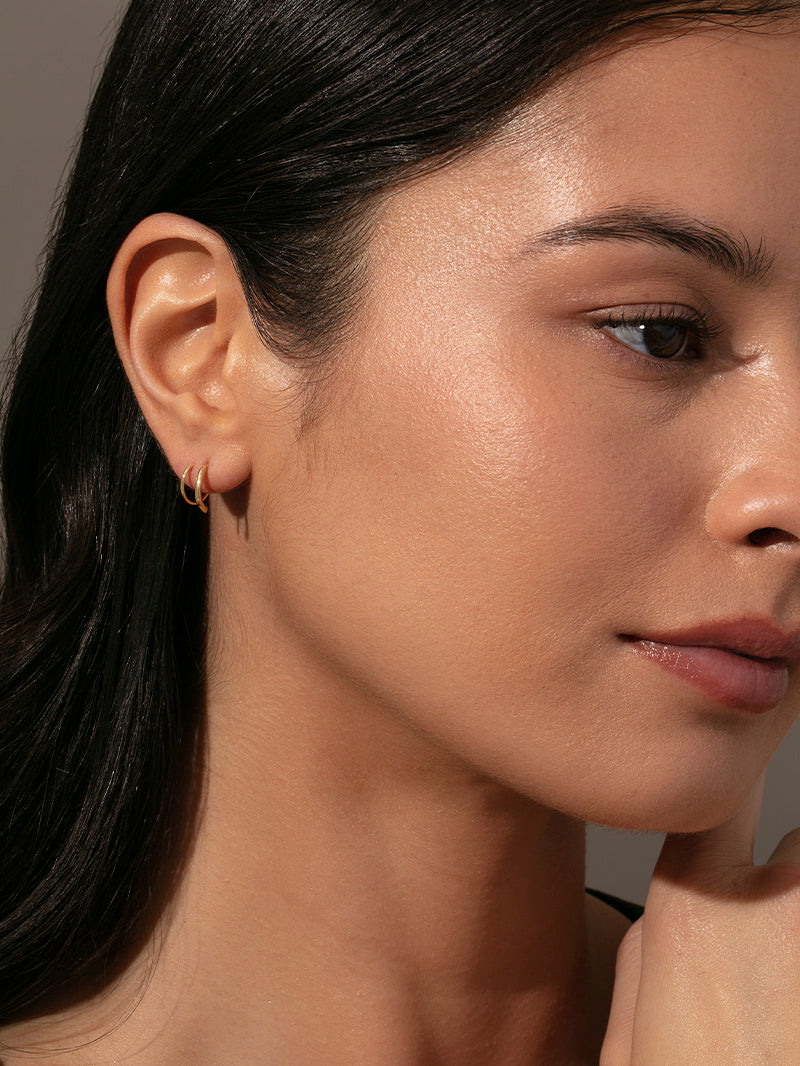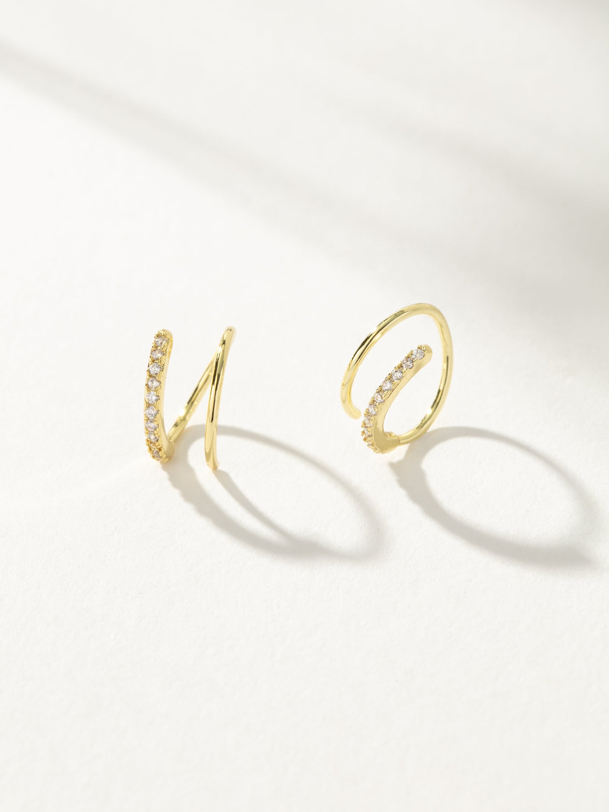 Get double the impact with minimal hardware. Our Seeing Double Earrings spiral around for a unique look that you only need one ear piercing for. These Sterling Silver or gold spiral earrings give you both a studded look and a delicate look — what more could you ask for?