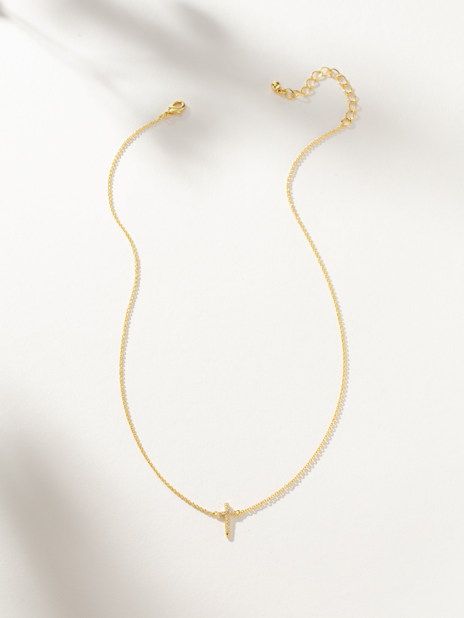 It’s not a T necklace, it’s our Simple Cross Necklace. Featuring a dainty, simple chain necklace and a pavé cross, this is the necklace your everyday look has been missing. Want to know the best part? Not only does this cross necklace come in gold, but you can also get it in Sterling Silver.