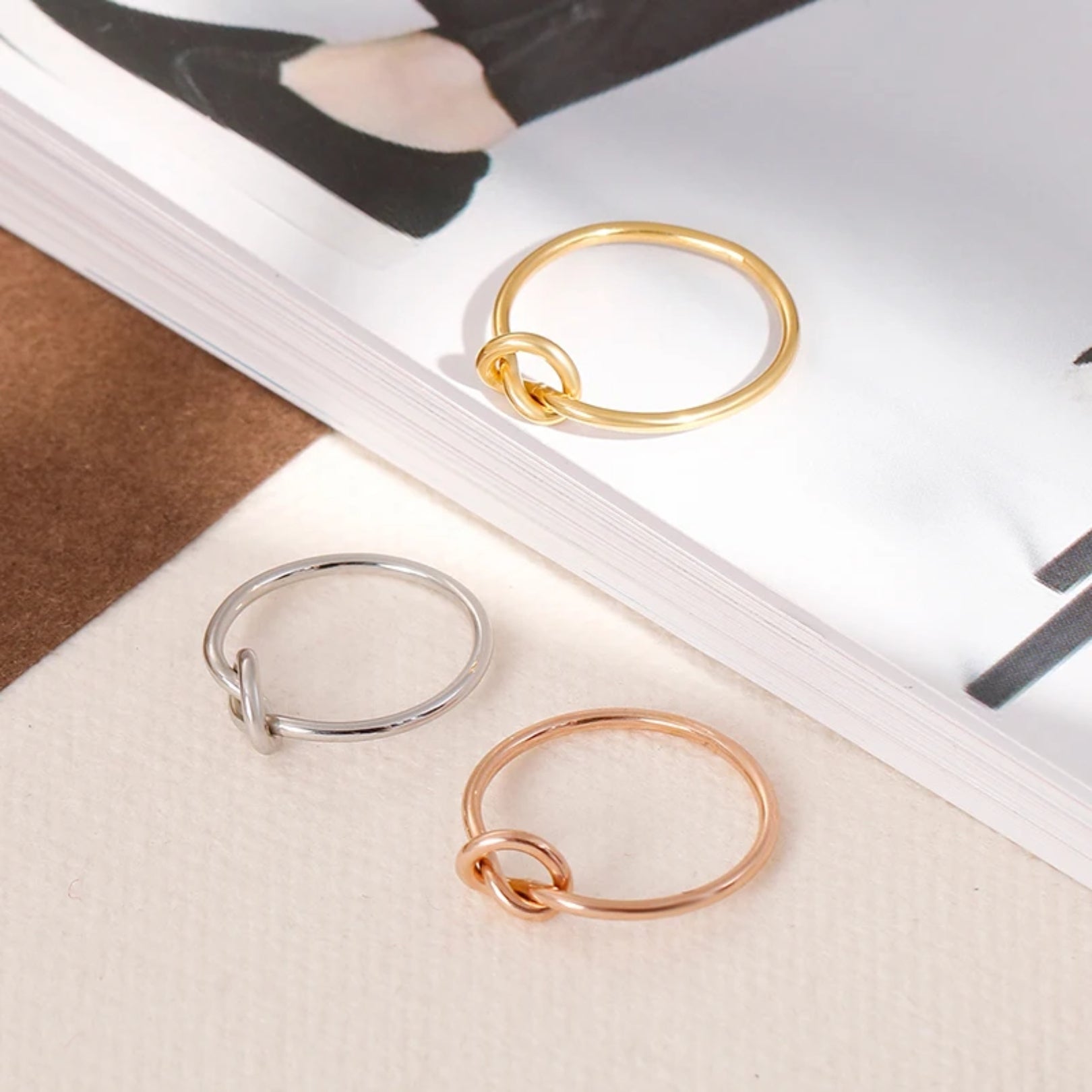Embrace the beauty of connection with the Simple Promise Knot Ring, an elegant and timeless piece that captures the essence of love, unity, and everlasting bond. Featuring a minimalist knot design, this delicate ring serves as a powerful symbol of togetherness, making it a perfect gift for a best friend, mother and daughter, or matching sisters.