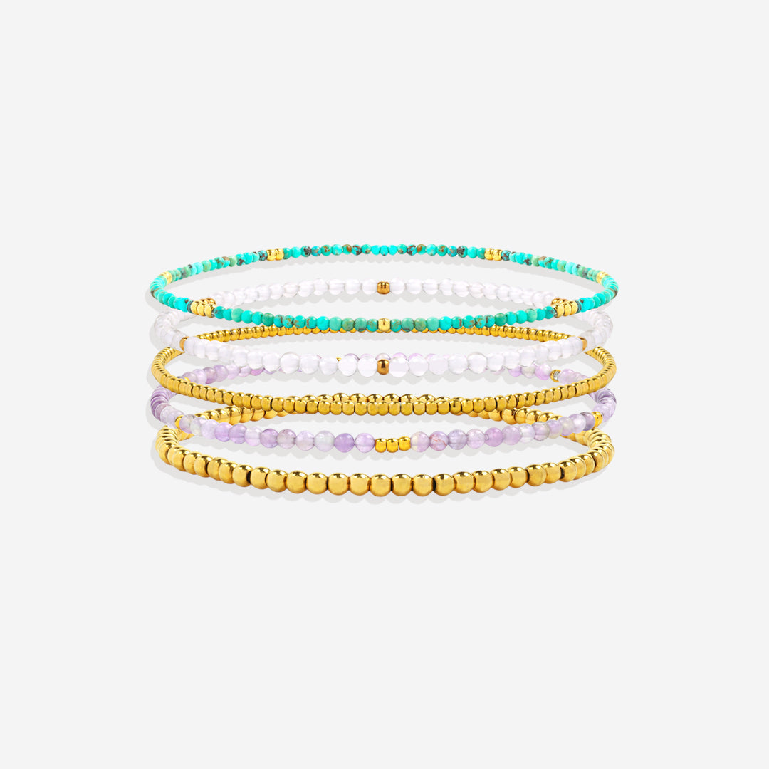Materials: Real 18k Gold Over Waterproof Surgical Grade 316L Stainless Steel, Jewelry-Grade Elastic, Ceramic and Natural Stone Beads (Read More)