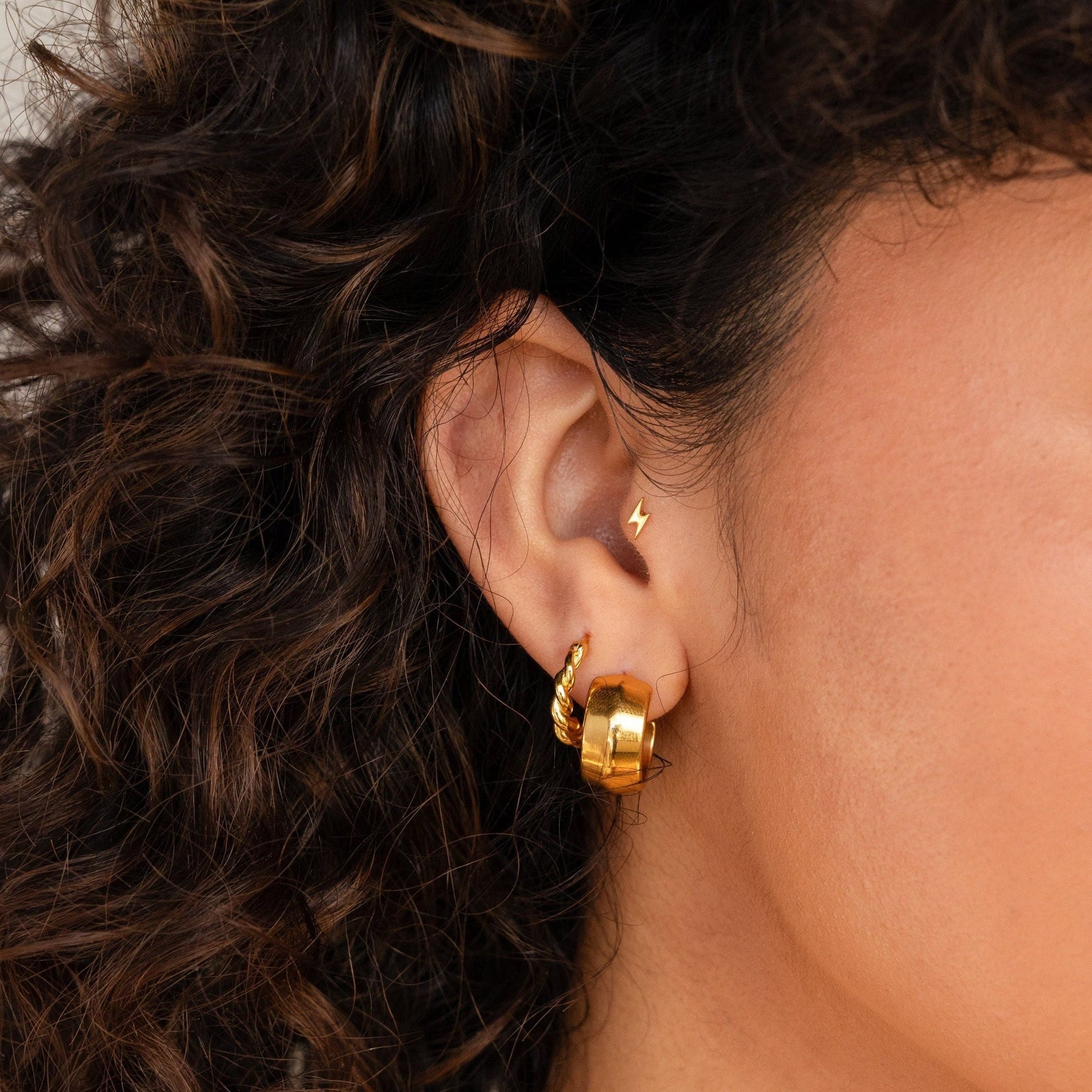 - Style D) Bundle Set of 3 (Save 10%): Includes Bolt Studs, Twisted Hoops, and Chunky Hoops