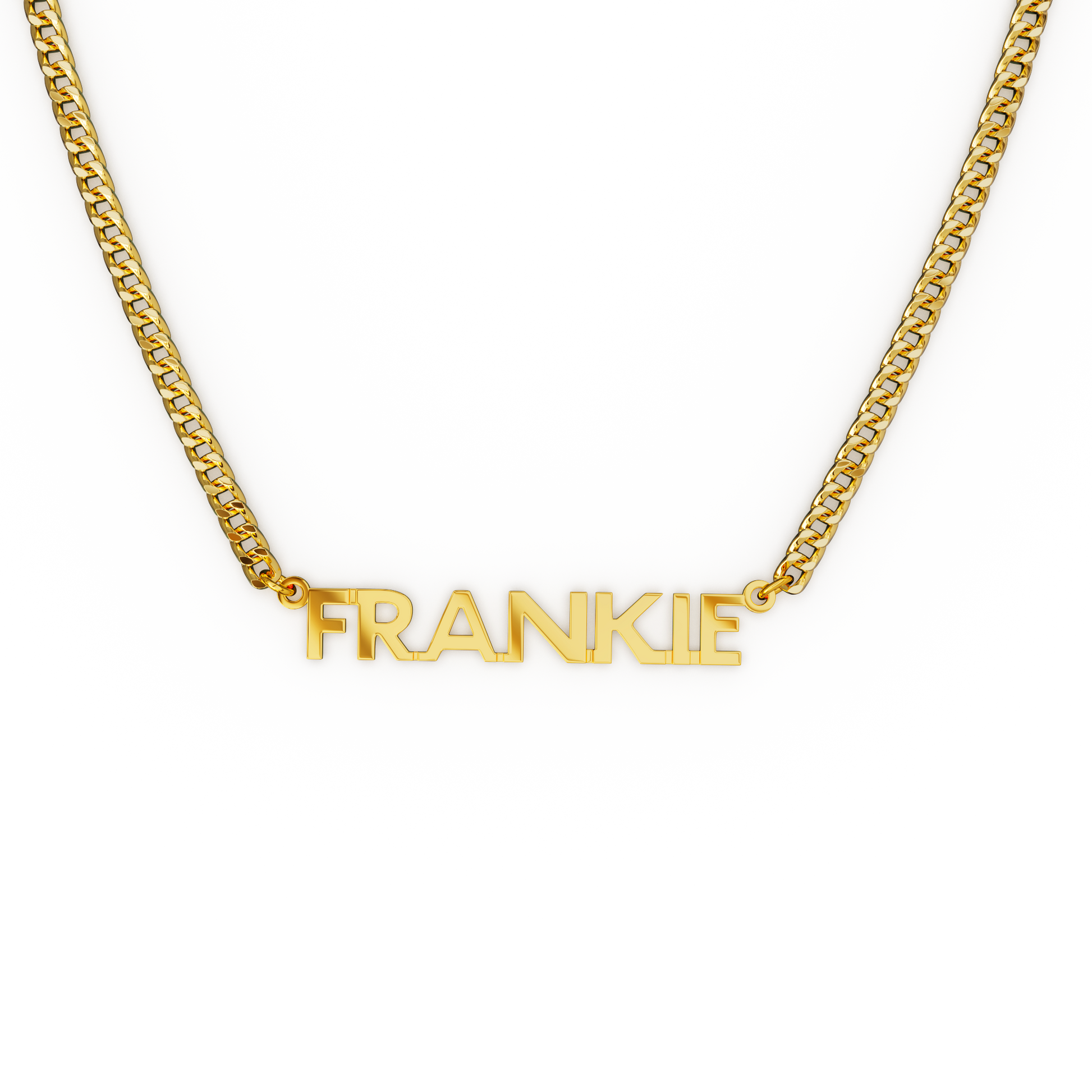 Customize your style with the Te Amo Name Necklace, a beautiful and personalized piece of jewelry that can bear your name or be a heartfelt gift for someone special. This necklace features an 18" curb chain with an adjustable 16" option, offering flexibility in how you wear it.