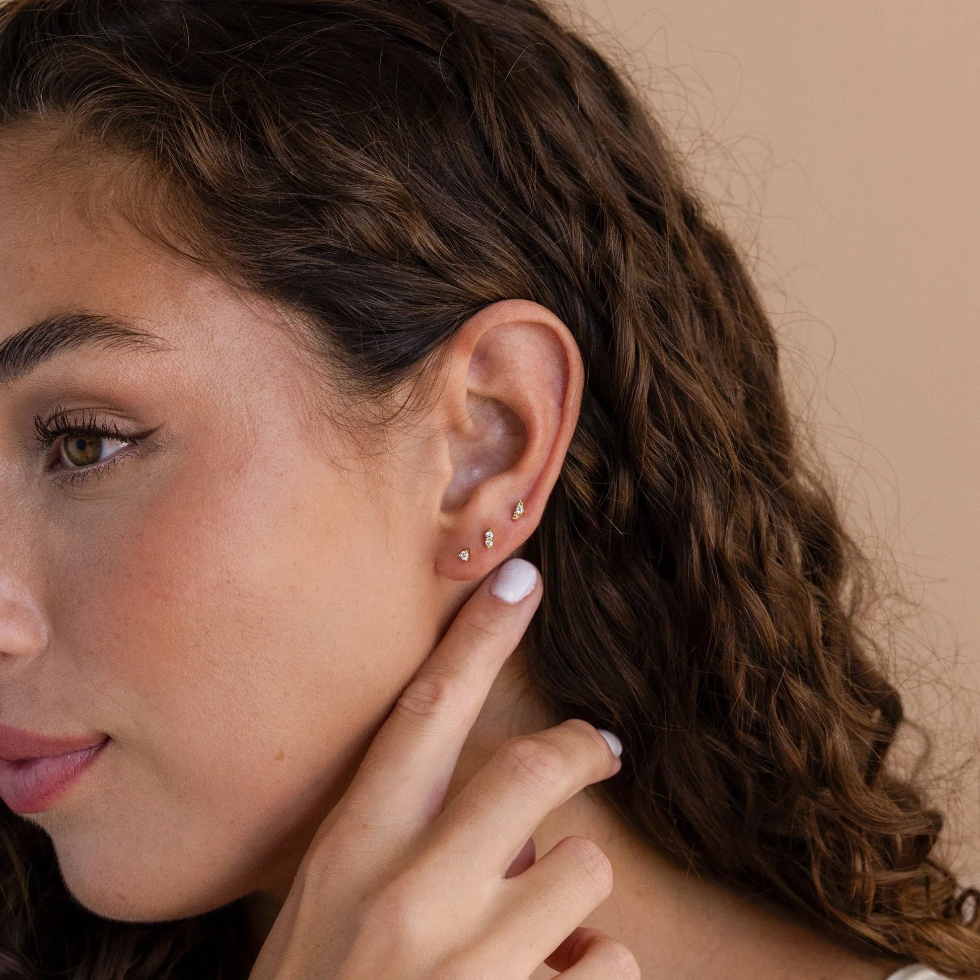 Featuring a Set of 3 CZ Diamond Flat-back Stud Earrings: