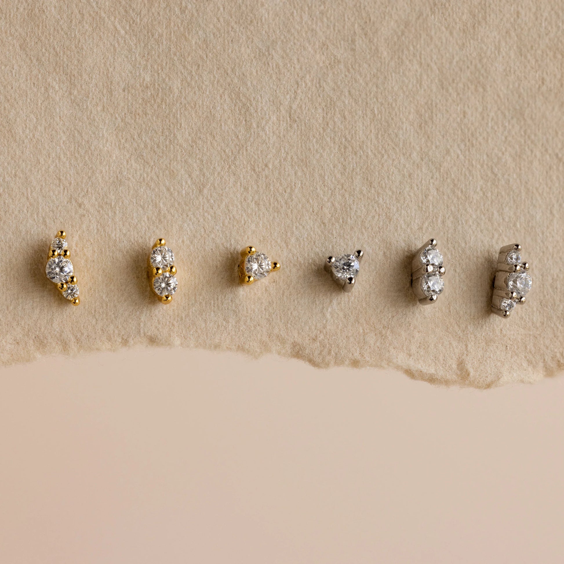 - 3) ~5.5mm Cluster Stud with two ~1mm CZ Diamonds surrounding one ~2mm CZ Diamond Stone