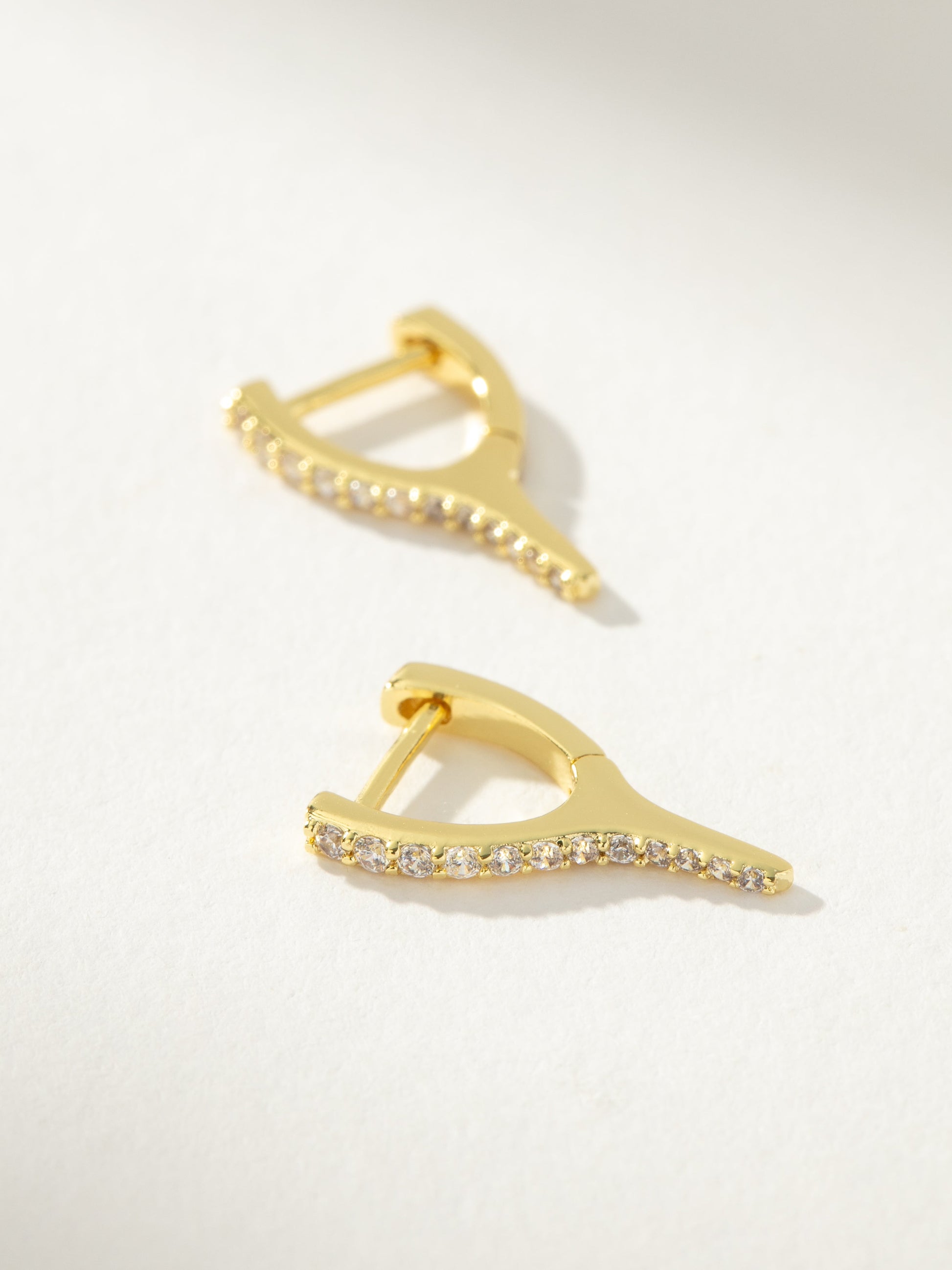 Make a wish to have the most unique huggie earrings ever and we’ll grant it. Crafted with a wishbone shaped hoop and lots of pavé, these gold huggie earrings are just what your ear stack needs. For a full look, pair the Wishbone Pavé Huggie Earrings with the Open Bar Ear Climber.